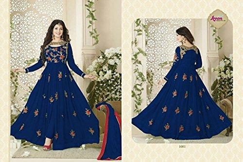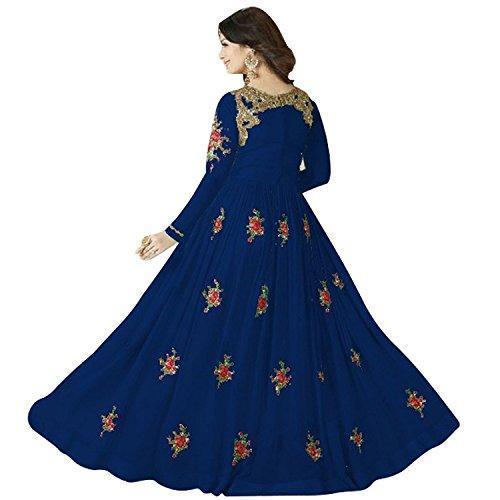 Clothfab Women Georgette Heavy Embroidery Work Pary Wear Anarkali Style Semi-Stitched Salwar Suit Dress Material With Dupatta (Blue-Colour) - NEIGHBOUR JOY