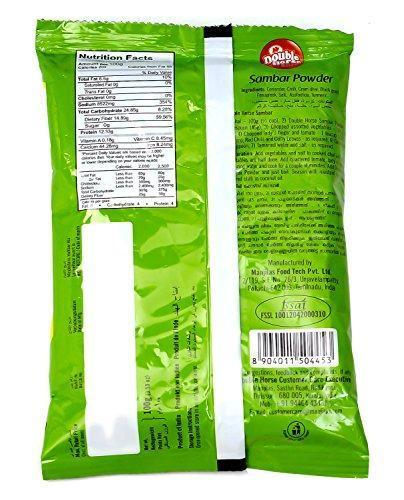 Details: Double Horse presents this Sambar Powder which contains Coriander, chilli, gram dhal, black gram, fenugreek, salt, asafoetida, turmeric. This comes with a shelf life of 12 months. It is prepared from selected condiments and spices. No need to use additional spices or condiments like chilli, coriander etc. This is processed under hygienic condition.