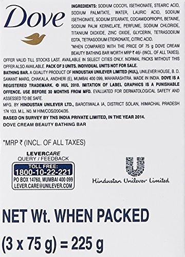 Details: Dove Cream Beauty Bar combines a gentle cleansing formula with Dove’s signature ¼ moisturizing cream to give you softer, smoother and more glowing skin. The mild cleansers help your skin to retain its natural moisture rather than stripping it away. This Dove bar even helps to replenish nutrients that are lost during the cleansing process – where a regular soap bar might leave your skin feeling dry and tight, a Dove White Bar leaves it feeling soft and smooth. It’s not a soap – it’s a beauty bar Washing with regular soap can cause skin to feel dry, tight and irritated as some cleansing ingredients strip skin of essential nutrients. What makes Dove different? Its gentle cleansers help your skin retain its natural moisture and its mild formula is kind to your skin. Dove is the No.1 Brand recommended by dermatologists in India. For best results, lather up your Dove Beauty Bar and massage the smooth, creamy lather over your face and body before rinsing thoroughly. For soft, smooth hands, you can also enjoy regular hand-washing throughout the day with your Dove bar. Soap may dry out your hands, but the classic moisturizing formula of Dove bars will leave skin softer, smoother and more glowing.