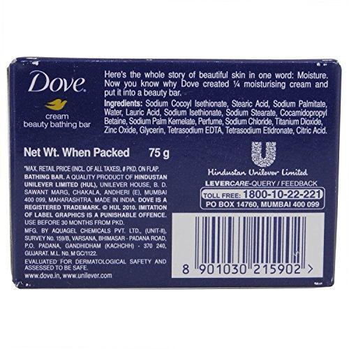 Details: Dove cream beauty bathing bar - here's a whole story of beautiful skin in one word - moisture. Now you know why dove created 1/4th moisturising cream and put it into a beauty bar..