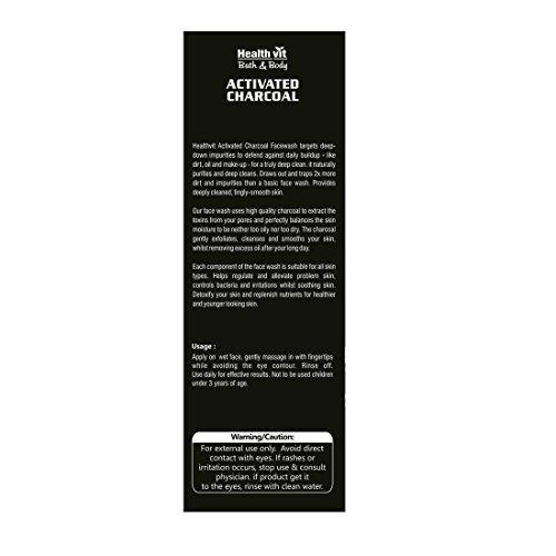 Details: Healthvit activated charcoal facewash targets deep-down impurities to defend against daily buildup - like dirt, oil and make-up - for a truly deep clean. It naturally purifies and deep cleans. Draws out and traps 2x more dirt and impurities than a basic face wash. Provides deeply cleaned, tingly-smooth skin. Our face wash uses high quality charcoal to extract the toxins from your pores and perfectly balances the skin moisture to be neither too oily nor too dry. The charcoal gently exfoliates, cleanses and smooths your skin, whilst removing excess oil after your long day. Each component of the face wash is suitable for all skin types. Helps regulate and alleviate problem skin, controls bacteria and irritations whilst soothing skin. Detoxify your skin and replenish nutrients for healthier and younger looking skin.