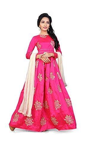 Details: Model Number -3131 , Promotion : Navratri Hues , Actual Fabric : Silk ,Bottom Size : 2 Mtr ,Chest Size : 40" Length Size 48" , Actual Color : Pink , Type : Semi Stitched , Pattern : Embroidered , Style Type : Long Anarkali , Occasion : Casual Wear , Hand Wash Only