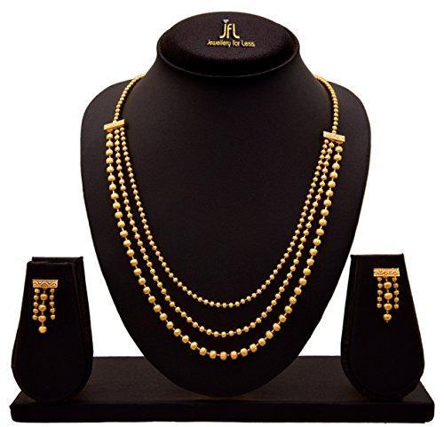 JFL - Traditional and Ethnic One Gram Gold Plated Multi Strands Round Gold Bead Necklace / Jewellery Set with Earrings for Women and Girls.