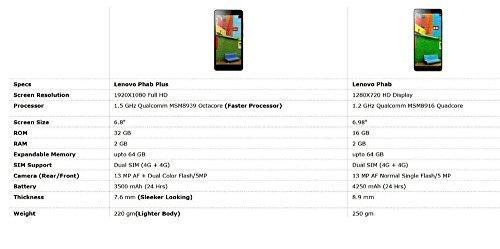 The Lenovo Phab Plus's 17.27cm (6.8) Full HD display with IPS technology is not just big, it's also clever. With a crisp 326 ppi resolution.You can do so much more with the Lenovo Phab Plus, and it's got the battery power to match.There's also a front-facing 5-megapixel wide-angle lens to help you master the art of the selfie.