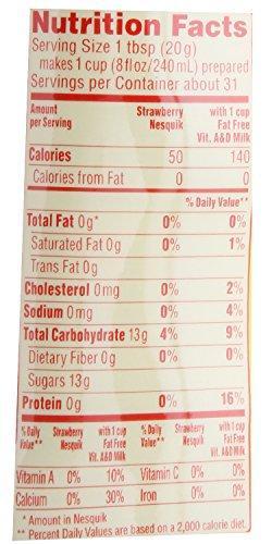 Details: Nesquik when mixed with 1 cup lowfat milk is filled with protein, carbs and happiness - to help build strong bodies and fuel active minds.