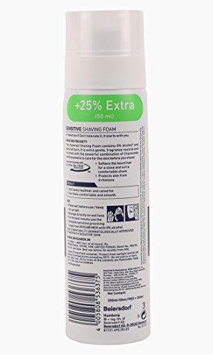 Details: NIVEA men Sensitive Shaving Foam. It softens the beard and protects the skin from irritations for a comfortable shave. It has 0% ALCOHOL and hence there is NO BURNING on irritated skin. Improves skin's condition over time.