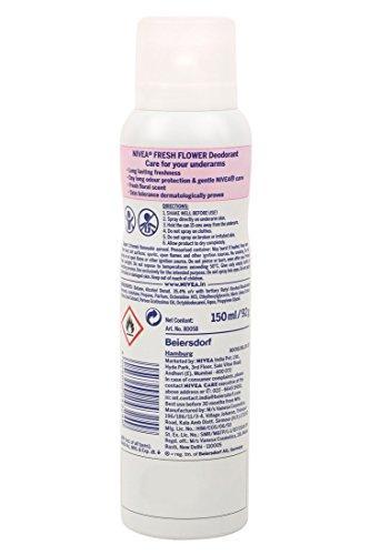 Details: Nivea fresh flower deodorant is a brand new deodorant offering from Nivea. Its refreshing formula contains ocean extracts which gives you day long freshness. It combines day long protection against body odour with the gentle Nivea care. For a noticeably fresh skin feeling: Fresh flower deodorant spray.