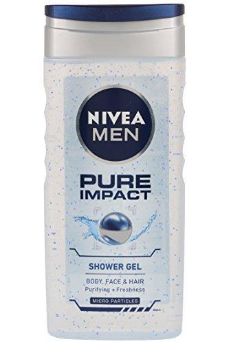 Details: NIVEA MEN Pure Impact Shower Gel gives you intensive hydration and effective cleansing with its purifying beads.This innovative 3-in-1 shower gel for Body, Face and Hair deep cleanses your skin with its extra fine scrub particles and keeps it moisturised. For that great skin feeling with every shower.Skin tolerance dermatologically proven.