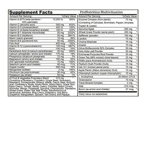 - PRO Nutrition daily multivitamin provides the ultimate nutritional goodness derived from 42 different vegetables & fruits. See images above.